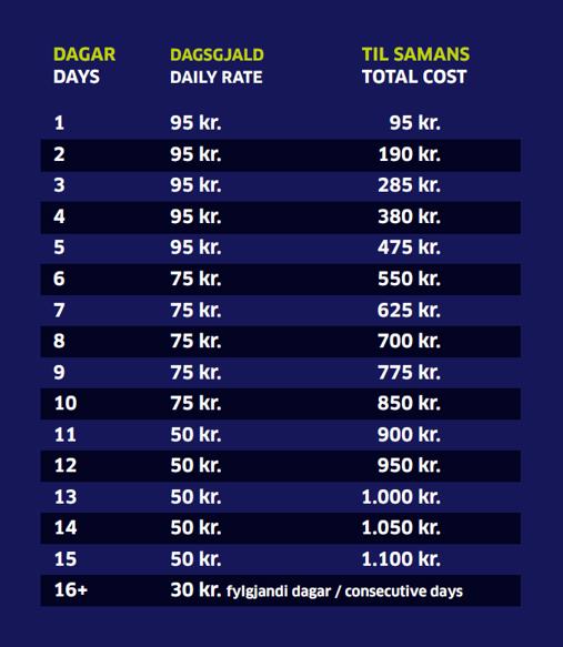 If you have any questions regarding parking, please contact us at (+298) 35 44 00 between 9-16 on weekdays or by email at parkering[ a]fae.fo.