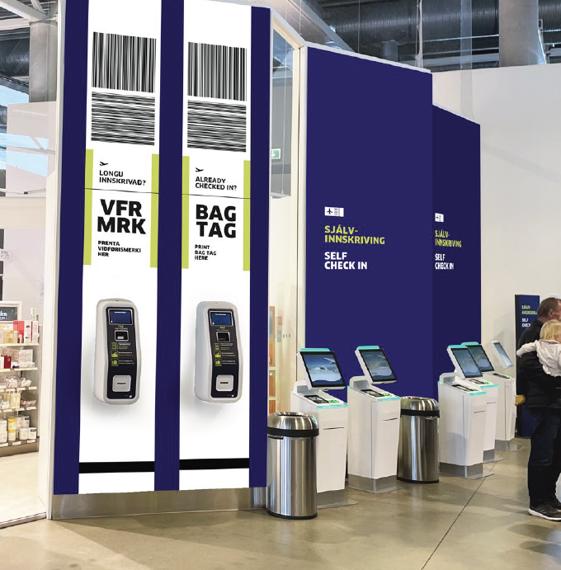 If you have already checked in, you can print out your luggage tag for checked luggage. Certain self-service machines are for luggage tags only. These machines are located in the walkway by the parking area and in the departure hall. When you have received your luggage tag, you may check in your luggage at the self-service drop-off.