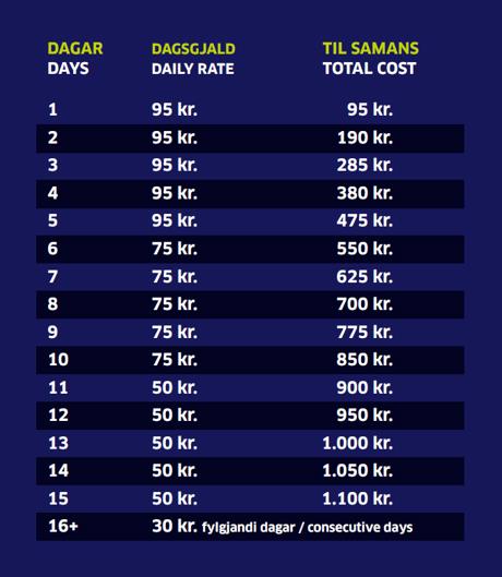 Prístalvan við galdandi parkeringsgjøldunum sæst niðanfyri.