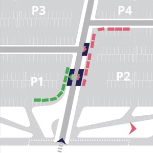 Niðanfyri sæst, hvussu parkeringsøkið á flogvøllinum er skipað - og hvar tú kanst finna taxa bilarnar.